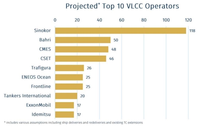 상위 10대 VLCC 선주가 통제하는 선대는 총 392척으로, 글로벌 슈퍼탱커 시장의 42%를 차지한다.