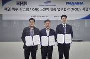 HMM(대표 최원혁)은 삼성중공업 및 국내 친환경 설비 전문기업인 파나시아와 ‘ORC(Organic Rankine Cycle) 폐열회수발전시스템 선박 실증 업무협약(MOU)’을 체결했다고 18일 밝혔다. 삼성중공업 판교R&D센터에서 17일 진행된 협약식에는 HMM, 삼성중공업, 파나시아 임직원 20여 명이 참석했다. 폐열회수발전시스템은 선박 엔진에서 발생하는 폐열을 활용해 선박 운항에 필요한 전력을 생산하는 기술이다. 기존의 증기를 이용한 폐열회수발전시스템은 고온의 폐열을 이용했는데, ORC 시스템은 물보다 끓는 점이 낮은 온도에서 기화되는 유기 열매체를 사용해 중저온의 폐열로도 전력 생산이 가능하다. 폐열회수발전시스템을 활용해 전력을 생산하면 그만큼 발전기 사용이 줄어들어 탄소 배출을 저감할 수 있다. LNG, 메탄올 등 친환경 연료를 사용하는 선박의 경우, 높은 연료 단가를 감안하면 운항비 절감 효과도 기대된다. 국내 최초로 진행되는 해상 실증을 통해 3사는 △ORC 폐열회수발전시스템의 효과 검증 △기술적·경제적 타당성 검토 △실증 운항 데이터 확보를 목표로 하고, 연간 230톤의 연료와 700톤의 탄소 배출 저감 효과를 기대하고 있다. 이번 협약
