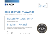 부산항만공사(BPA, 사장 송상근)는 기관의 지속가능경영보고서가 미국커뮤니케이션연맹(LACP, League of American Communications Professionals)이 주관한 ‘2025 LACP 스포트라이트 어워즈(2025 LACP Spotlight Awards)’에서 세계 1위를 수상했다고 18일 밝혔다. BPA는 지난해 이어 2년 연속 플래티넘을 수상했으며 100점 만점에 99점이라는 최고 수준을 기록했다. 올해는 전 세계 500여개 이상의 기업이 보고서를 제출하였으며 BPA는 6개 평가항목 중 5개 항목에서 만점을 받아 종합 세계 1위에 선정됐다. LACP 스포트라이트 어워즈는 전 세계 주요 기업, 공공기관, 비영리단체 등이 참여하는 국제적 보고서 평가로 △전략적 메시지 △콘텐츠의 투명성 및 신뢰도 △창의성 △디자인 및 커뮤니케이션 효과 △보고서의 구조적 완성도 등을 종합 평가한다. BPA 보고서는 ESG 전략의 일관성, 국제기준에 기반한 공시체계, 항만산업 특화 전략의 구체성 등에서 특히 높은 점수를 받은 것으로 평가된다. BPA는 최근 개정된 GRI 스탠다드 2021, 국내 공공·민간 ESG공시기준인 K-ESG 가이드라인 등을 종합적