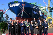 한국해양진흥공사의 금융 지원을 바탕으로 HMM이 국내 선사 최초로 발주한 메탄올 이중 연료 추진선 9척 가운데 8번째 선박이 인도됐다. 한국해양진흥공사(사장 안병길)는 9일 오전 전라남도 영암군에 있는 HD현대삼호에서 개최된 HMM의 9,000TEU급 컨테이너선 ‘라임(LIME)호’ 명명식에 참석해 친환경 선박의 성공적인 도입을 축하했다. 이날 행사에는 안병길 해진공 사장을 비롯해 최원혁 HMM 대표이사, 김재을 HD현대삼호 대표이사 등 금융·해운·조선 분야 주요 관계자 50여 명이 참석해 친환경 컨테이너 선박의 탄생을 축하하고 무사 항해를 기원했다. 명명식은 거친 바다로 나가는 선원들의 안전을 빌며 선박의 이름 지어주는 전통 의례로써 보통 조선소에서 건조를 마친 배를 선주에게 인도하기 직전에 진행된다. 이번에 명명된 라임호는 기존 화석연료 대비 온실가스와 대기오염물질 배출을 획기적으로 줄여주는 친환경 연료인 메탄올을 기반으로 운항한다. 라임호 선박 건조는 HD현대삼호가 맡으며, 국내 해운과 조선 산업 간 협력을 강화한 상생 사례로 평가된다. HMM은 지난 2023년 국적 선사 중에서 처음으로 메탄올 이중연료 추진 선박 9척을 발주했다. 라임호는 HMM이 발