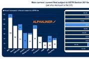 정기선시장 분석기관인 알파라이너(Alphaliner)는 2026년까지 글로벌 '톱10' 선사들이 최대 32억 달러의 수수료를 지불하게 될 것으로 전망했다. 미국 무역대표부(USTR)는 지난 4월 항만 수수료 부과계획을 발표했으며, 업계의 준비와 의견수렴을 위해 시행을 6개월 유예한 상태다. 하지만 시행일인 10월 14일이 임박한 가운데, 세부 지침과 결제 방식 등이 아직 공개되지 않아 불확실성이 커지고 있다. 알파라이너는 항만 수수료가 미국 정부의 “중국 해운 지배력 반전”과 “미국 조선업 복원”을 목표로 한다고 평가했다. 수수료는 중국 소유·운영 선박에 대해 순톤수 기준 1회 항차당 80달러, 연간 최대 5회까지 부과된다. 이에 따라 중국 국영선사 Cosco그룹은 2026년 한 해에만 약 15억 3000만 달러의 수수료를 부담할 것으로 추산된다. 또한 중국에서 건조된 선박에 대해서는 별도 수수료가 적용된다. 해당 선박이 외국 기업에 의해 운영되거나 임차된 경우에도 순톤수 기준 23달러 또는 TEU당 154달러 중 높은 금액이 적용되며, 역시 연간 최대 5회까지 부과된다. 알파라이너는 선사별 예상 부담액도 공개했다. ZIM은 약 5억 1000만 달러, ONE