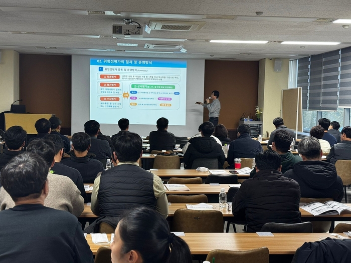 부산지역 설명회에는 경영책임자와 안전담당자, 유관기관 관계자 등 약 120명이 참석하였다.