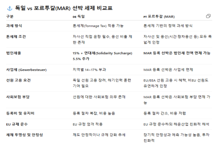 반면 MAR는 톤세제 조건으로 자사선과 용선 모두를 유연하게 인정하는 등 유럽 내에서도 경쟁력있는 해운 세제와 규제 환경을 제공하는 것으로 평가받고 있다.