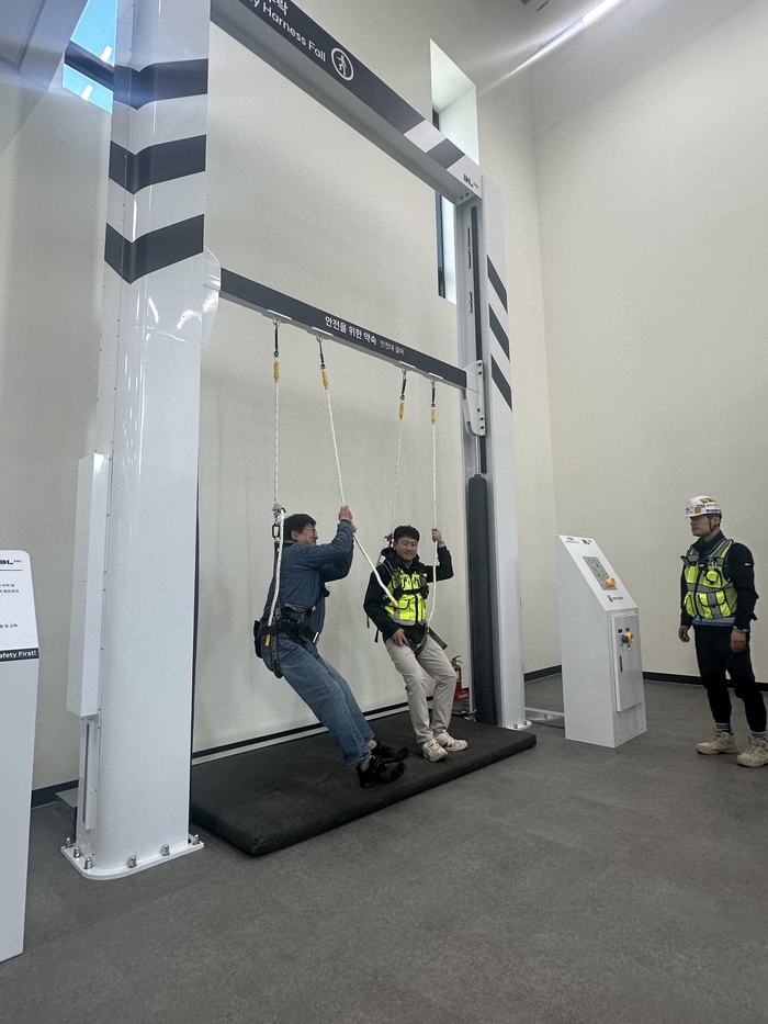 BPA가 협력업체들의 체계적인 안전교육을 목적으로 신항 건설공사 현장에 조성한 안전체험장을 활용하여 실제 사고사례를 체험하는 안전인식 개선 교육도 진행됐다.