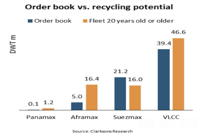 원유운반선 오더북과 현 선대(Orderbook-to-Fleet) 비율이 14.1%로 치솟으며 지난 9년래 최고치를 기록했다.