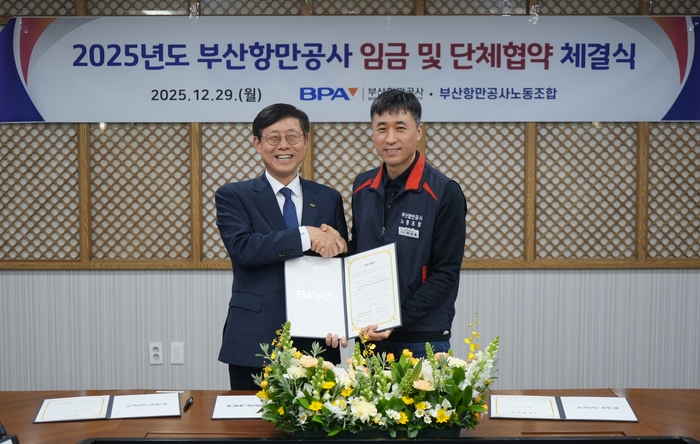 부산항만공사(BPA, 사장 송상근, 노조위원장 박신호) 노·사는 12월 29일 본사 사옥에서 2025년도 임금 및 단체협약을 체결했다.
