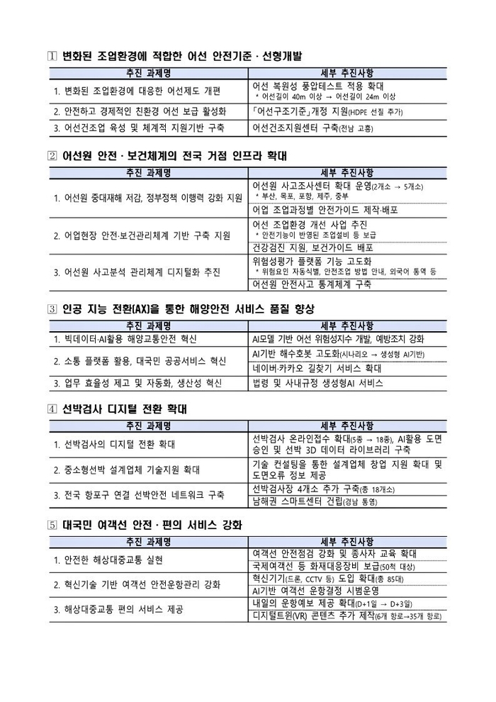 남해권 스마트선박안전지원센터도 올해 본격적인 착공에 들어선다. 전국 선박검사장도 총 18개소로 확대해 전국 선박안전 네트워크를 한층 촘촘하게 구축한다.