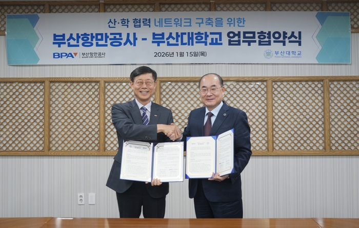 부산항만공사(BPA, 사장 송상근)는 15일 BPA 본사에서 부산대학교(PNU, 총장 최재원)와 ‘산·학 협력 네트워크 구축을 위한 업무협약(MOU)’을 체결했다.