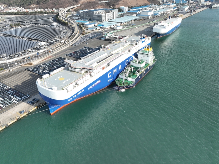 23~24일 이틀간 울산항 자동차부두에서 진행된 LNG 급유 작업은 울산항의 주요 선종 중 하나인 자동차운반선에 LNG가 선박 연료로 처음 상업 공급된 사례다.