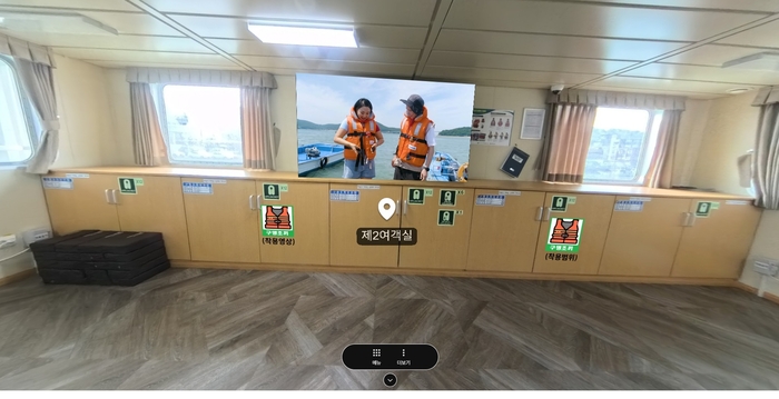 ‘여객선어때’는 여객선 탑승 전 선내 구조와 안전 수칙, 비상 시 행동 요령 등을 미리 체험할 수 있는 누리집 기반 가상현실(VR) 서비스다.