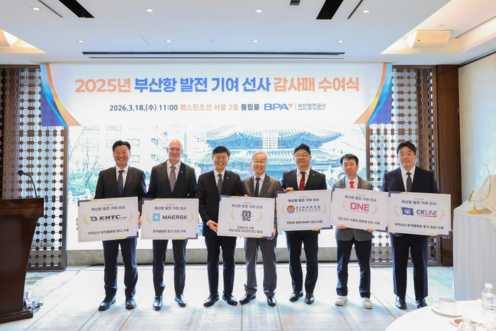부산항만공사(BPA, 사장 송상근)는 18일 서울 웨스틴조선 호텔에서 부산항 발전에 기여한 국내외 선사들에게 감사의 마음을 전하는 감사패 수여식을 개최했다고 밝혔다.