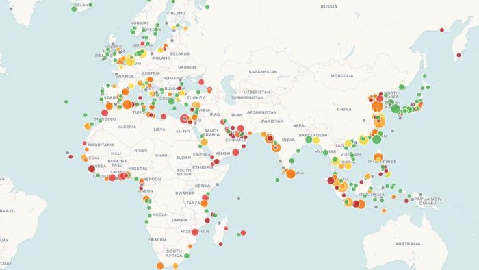 제네타는 실시간 항만 혼잡 지도를 통해 주요 항만의 대기 비율을 공개하고 있다.