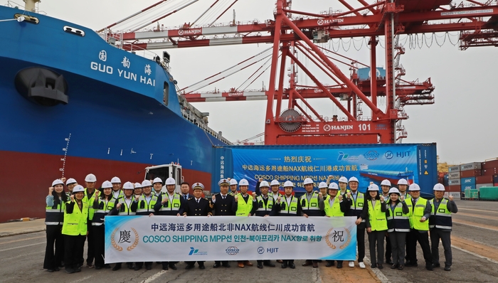 인천항만공사(IPA)는 지난 31일 인천항 최초로 북아프리카 3개 항만을 연결하는 NAX(North Africa Express) 컨테이너 정기 서비스가 31일부터 인천항에서 신규 운영에 들어갔다고 밝혔다.