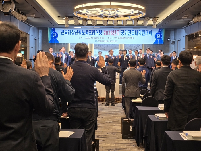 전국해상선원노동조합연맹(선원노련, 위원장 김두영)은 8일 오전 부산 코모도호텔 1층 그랜드볼룸에서 2026년도 정기전국대의원대회를 개최했다.
