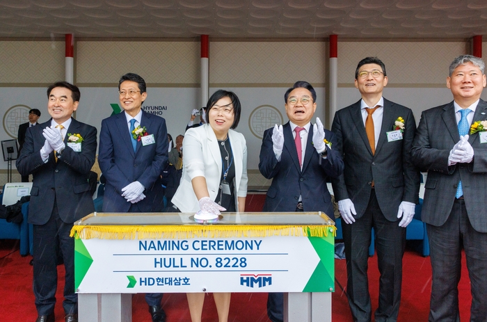 이날 행사에는 안병길 해진공 사장을 비롯해 최원혁 HMM 대표이사, 김재을 HD현대삼호 대표이사 등 금융·해운·조선 분야 주요 관계자 50여 명이 참석해 친환경 컨테이너 선박의 탄생을 축하하고 무사 항해를 기원했다.
