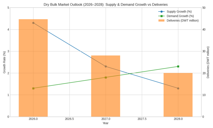 한 선박중개인은 “2026년은 공급이 건화물선 시장을 주도하는 해"라며 "인도량이 한꺼번에 몰리면 운임 변동성이 크게 확대될 수밖에 없다"고 말했다.