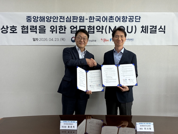 한국어촌어항공단(이사장 홍종욱)은 중앙해양안전심판원(원장 이시원)과 해양 및 어항 분야의 안전사고 예방과 안전관리 수준 향상을 목적으로 업무협약(MOU)을 체결했다고 밝혔다.