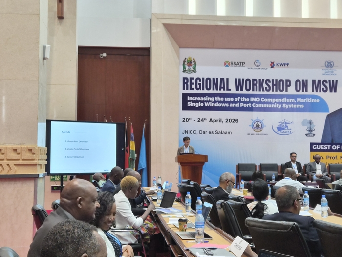 부산항만공사(BPA, 사장 송상근)는 4월 20일부터 24일까지 탄자니아 다르에스살람에서 열리는 「해상 단일창구(MSW) 및 항만커뮤니티시스템(PCS) 지역 워크숍」에 참석해 부산항의 항만물류통합플랫폼인 체인포털 구축·운영과정을 우수사례로 소개했다고 밝혔다.