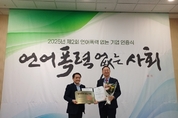 한국해양진흥공사(사장 안병길, 이하 ‘해진공’)는 11월 27일(목) 서울 서대문구 핀란드 타워에서 개최된 ‘제2회 언어폭력 없는 기업 인증제’ 우수기관상을 수상했다고 밝혔다. ‘제2회 언어폭력 없는 기업 인증제’는 산업정책연구원과 서울과학종 합대학원대학교가 공동 주관하고, 고용노동부와 다국적기업 최고경영자협회가 후 원하는 조직문화 혁신의 출발점이 될 수 있는 인증 제도다. 제2회 언어폭력 없는 기업 인증제는 “존중과 배려가 살아 있는 건강한 조직문화를 구축해 온 기관을 격려하고 그 성과를 널리 확산하기 위해 마련된 제도”로, 올해 행사에는 40여 개의 주요 공공·민간기업이 참여한 가운데 진행되었으며 인증패 수여와 함께 우수기관 수상이 이루어졌다. 한편, 해진공은 직장 내 상호존중과 배려 중심의 조직문화를 정착시키기 위해 전 사적인 노력을 기울여 왔다. 구성원 간의 건강한 소통 문화를 확산하기 위해 ‘상호 존중의 날’을 지정·운영하고, ‘아트 테라피’와 같은 직무 스트레스 해소 프로그램 을 정기적으로 개최하는 등 실질적인 캠페인을 지속해왔다. 또한, 전 직원을 대상으로 ‘인권 경영의 이해 및 상호존중 소통법’ 대면 교육을 시 행했으며, ‘나-전달법(I-Mes