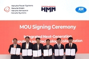 HMM(대표이사 사장 최원혁)이 한화그룹 4개 계열사(한화파워시스템, 한화오션, 한화에어로스페이스, 한화시스템), KR(한국선급)과 ‘차세대 무탄소 추진체계 공동 개발 위한 기술협력 MOU’를 체결했다고 22일 밝혔다. 부산에서 열리고 있는 ‘국제조선 및 해양산업전(KORMARINE 2025)’의 한화오션 부스에서 22일 진행된 협약식에는 HMM, 한화그룹, KR 임직원 30명이 참석했다. ‘차세대 무탄소 추진체계’는 암모니아 가스터빈(GT)과 연료전지(Fuel Cell)를 통해 만들어낸 전력으로 선박을 운항하는 시스템이다. 암모니아 가스터빈은 무탄소 연료인 암모니아를 연소해 전력을 생산하며, 연료전지는 산소와 수소가 결합하는 화학반응을 통해 전력을 생산하기에 탄소를 전혀 배출하지 않는다. 참여사들은 중소형 컨테이너선 운항에 적합한 시스템 개발, 더 나아가 무탄소 추진체계를 활용한 새로운 개념의 선박 개발까지 공동 추진할 계획이다. 이번 프로젝트에서 한화그룹은 암모니아 가스터빈, 연료전지 등 추진체계 개발을 진행하고, HMM은 선박 운항 경험을 바탕으로 실증을 수행한다. KR은 안전성 검토, 규제 요건 자문 등 국제 인증 취득을 위한 협력을 이어갈 예정이다.